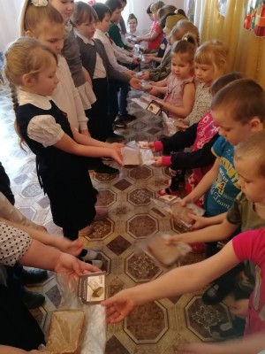 Обучающиеся 2-а класса рассказали о Всероссийской акции "Блокадный хлеб" ребятам из детского садика.