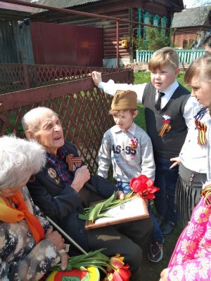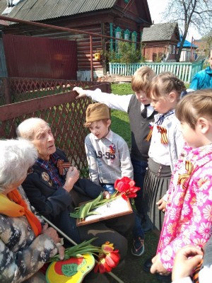Обучающиеся 2-б класса подготовили и подарили небольшой концерт ветеранам и детям войны. Встреча была очень теплой, радостной и праздничной. Ребята подарили подарки сделанные своими руками и цветы.