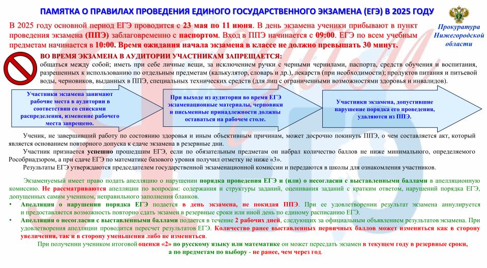 Памятка о правилах проведения Единого Государственного Экзамена (ЕГЭ) в 2025 году
