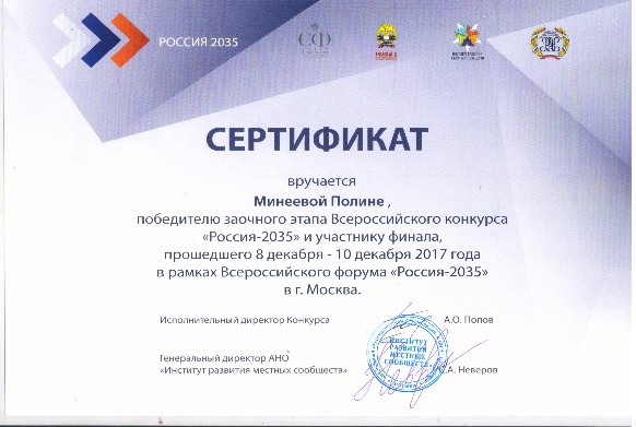 Победители заочного этапа конкурса «Россия - 2035» (подробнее)